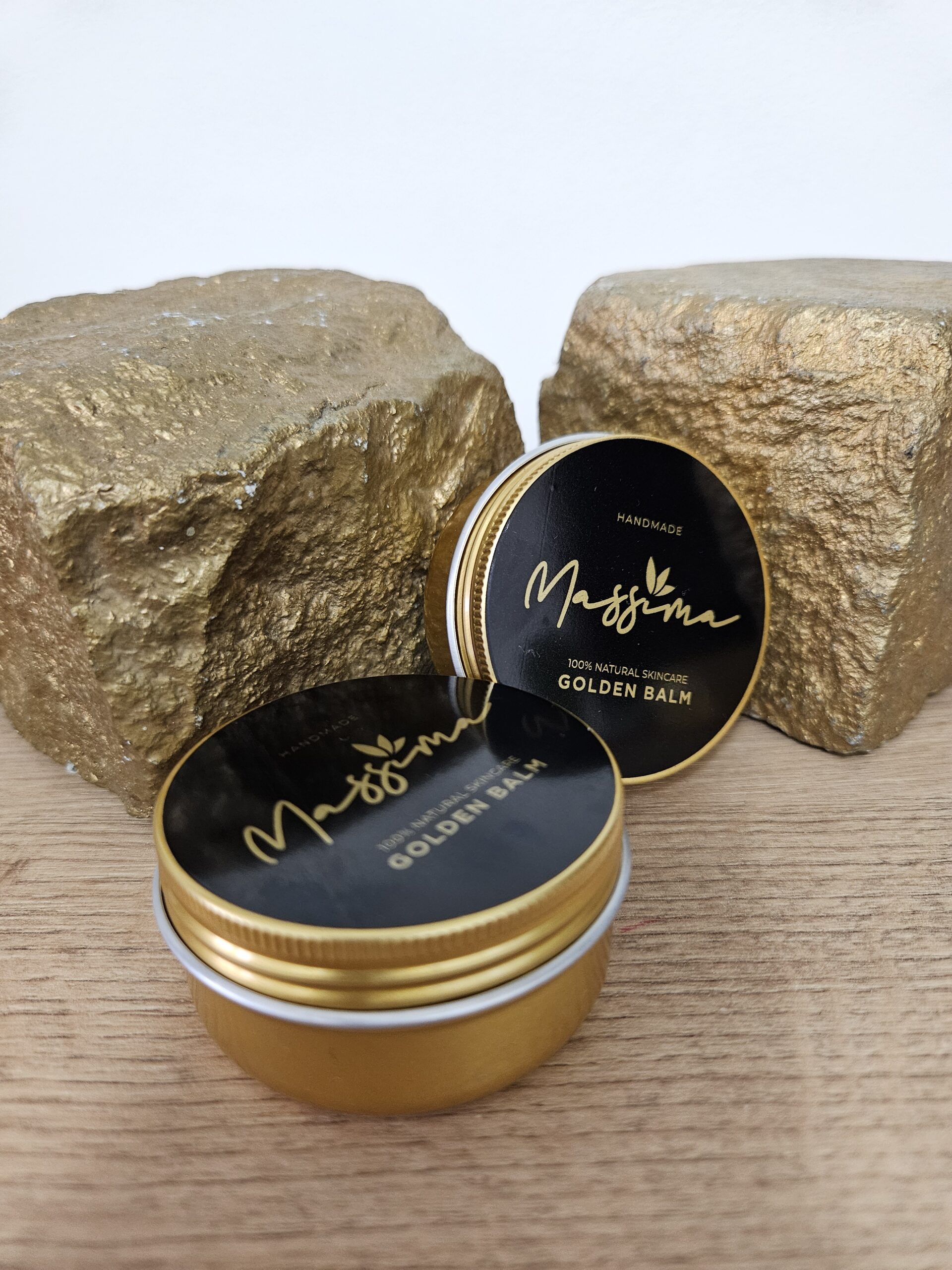 Golden balm je univerzalni balzam-melem čija je osnovna namena uklanjanje zadebljanja na koži i vraćanje mekoće. Može se koristiti za tretiranje grube kože peta, laktova, kolena, dlanova. Omekšava I regeneriše kožu, a zbog efikasnosti i blagotvornog dejstva može se koristiti na svim delovima kože, uključujući i lice. Pozitivni efekti se vide nakon samo par nanošenja. Sastoji se iz ekskluzivnih i kvalitetnih ulja I butera poput ulja pistaćija, ulja brazilskog oraha, maslinovog, lanenog, nevenovog ulja, shea butera…