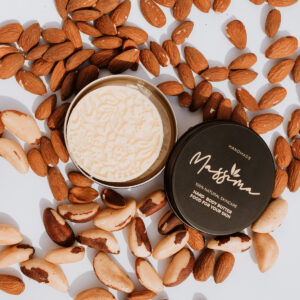 100% prirodni pčelinji vosak ima umirujuće dejstvo i ublažava iritiranu kožu, a pritom ne zapušava pore jer je nekomedogen. Ulje slatkog badema štiti kožu od prevremenog starenja, dok će ulje brazilskog oraha obezbediti dovoljnu količinu selena i oleinske kiseline. Shea butter sprečava gubitak vlage iz kože i duboko prodire u nju i odličan je saveznik u prevenciji nastanka strija, baš kao i kakao buter koji će formirati zaštitnu barijeru i dati savršen, prirodni miris celom proizvodu.